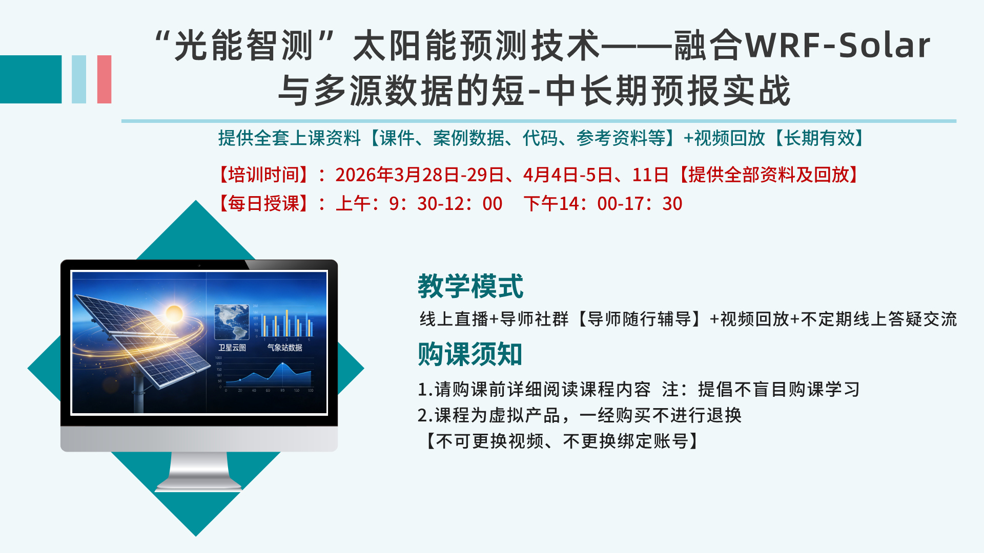 直播课:“光能智测”太阳能预测技术高级研修班——融合WRF-Solar与多源数据的短-中长期预报实战